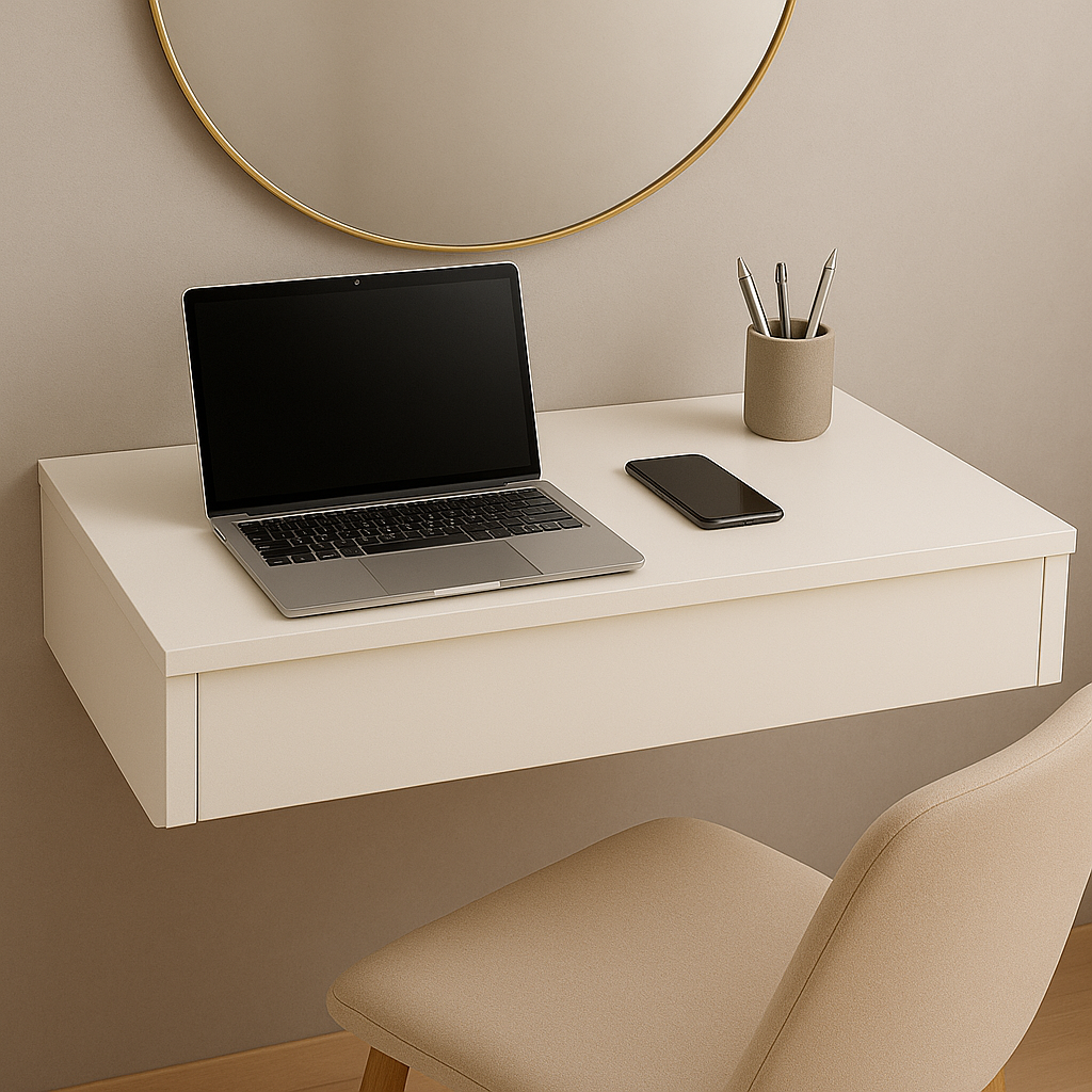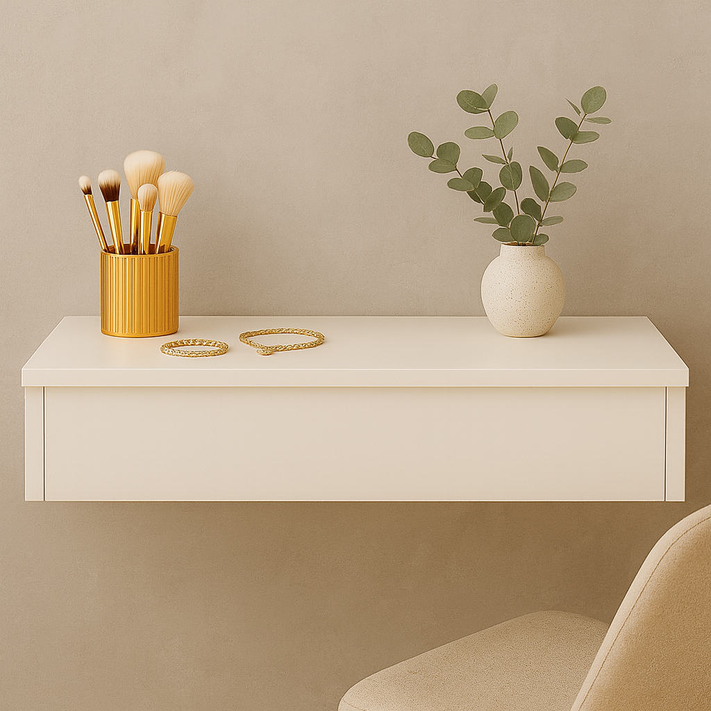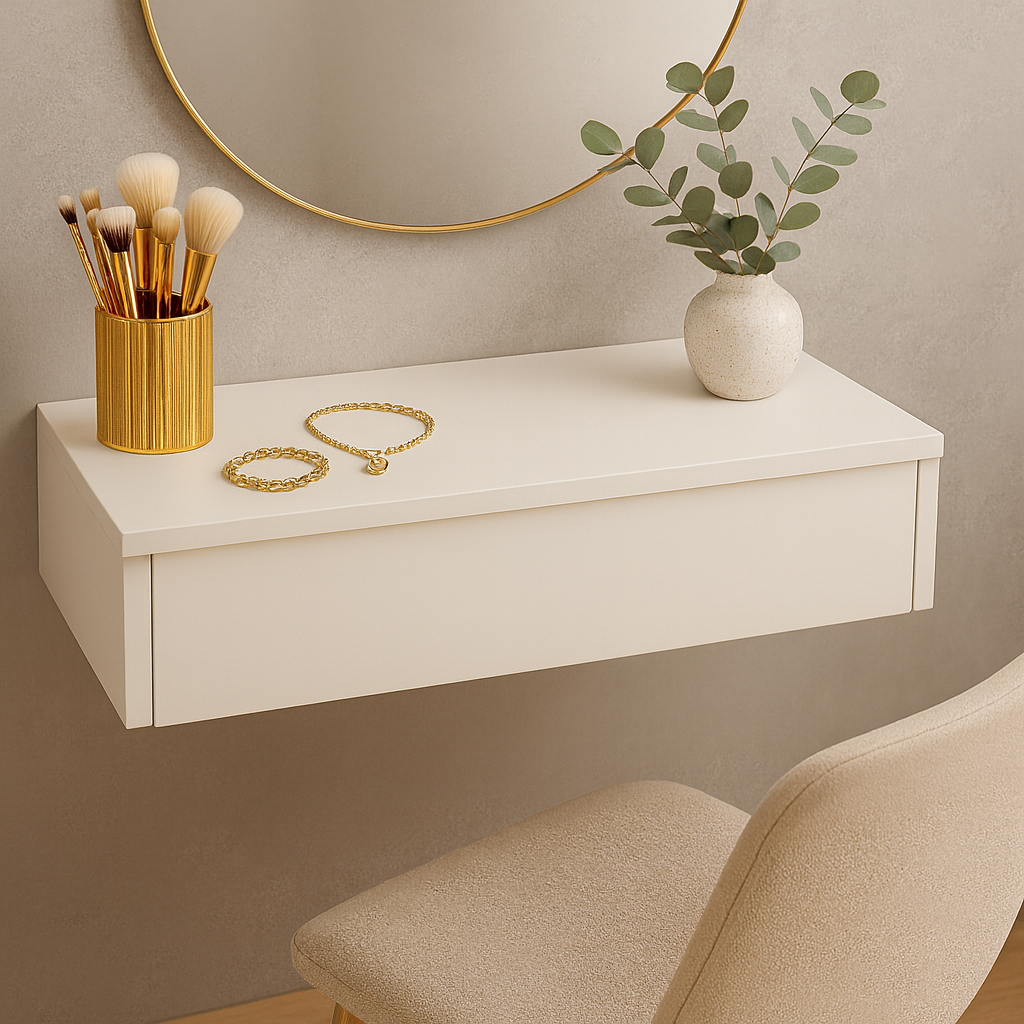 💡 Versatilidade Que Encanta: Pode ser usada como penteadeira, aparador decorativo, bancada de apoio no home office ou até como prateleira suspensa e até como cabideiro na versão com barra. Um móvel multifuncional que se adapta às suas necessidades.