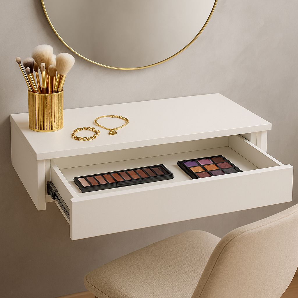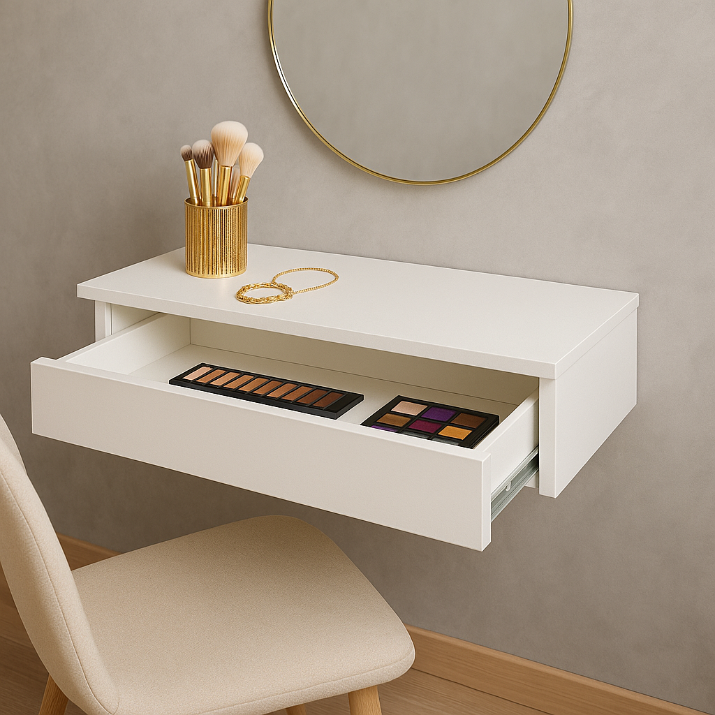 Penteadeira Suspensa com Gaveta Multifuncional Corrediça Organizadora Maquiagens Hall de Entrada com Barra