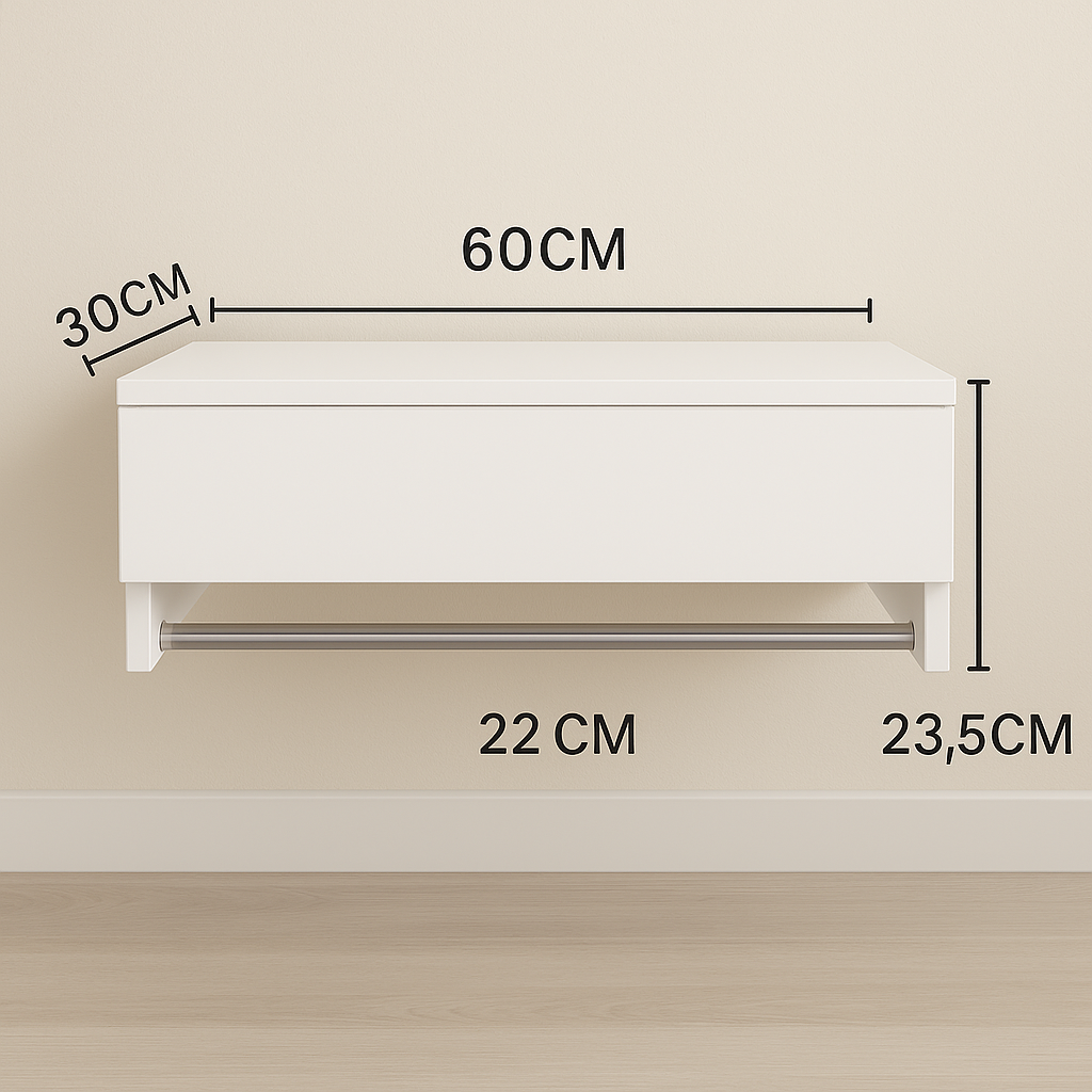 📏 Medidas Compactas e Inteligentes: Com 13cm de altura, 30cm de profundidade e 60cm de comprimento, é ideal para otimizar espaços sem abrir mão da praticidade. Perfeita para quem quer um ambiente organizado e charmoso.